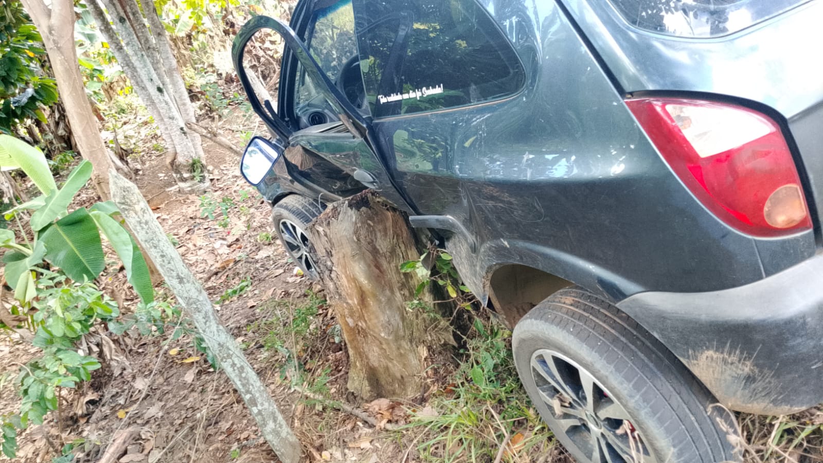 De acordo com informações apuradas, o condutor do veículo perdeu o controle da direção e acabou colidindo lateralmente com o toco de uma árvore às margens da rodovia. O impacto causou danos materiais ao automóvel.