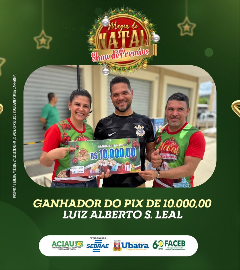 Divulgação A cidade de Ubaíra, no Vale do Jiquiriçá, vivenciou um clima especial de celebração e valorização do comércio local com a promoção “Magia do Natal com Show de Prêmios”, realizada pela Associação Comercial, Industrial e Agropecuária de Ubaíra (ACIAU). O evento, que já se consolidou como uma das principais ações de incentivo ao consumo na região, … continue