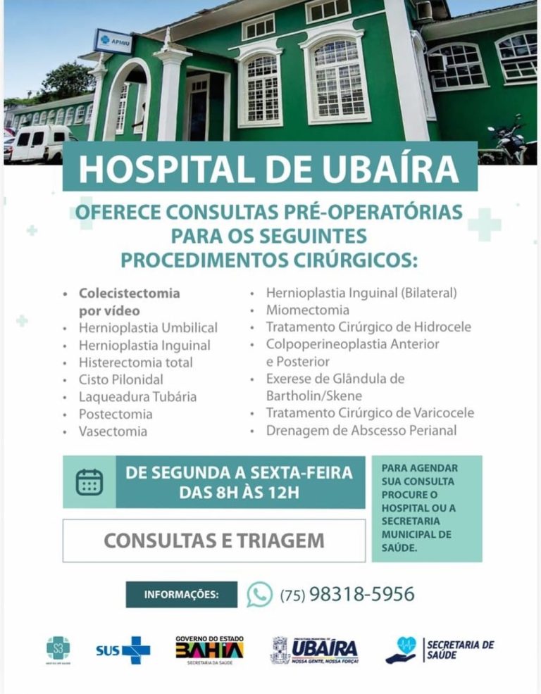 Foto: Ascom O Hospital de Ubaíra, em parceria com a Prefeitura Municipal, segue fortalecendo o compromisso com a saúde da população ao oferecer consultas pré-operatórias para diversos procedimentos cirúrgicos. A iniciativa garante mais qualidade no atendimento, cuidado humanizado e agilidade no acesso aos serviços de saúde. Os atendimentos acontecem de segunda a sexta-feira, das 8h … continue