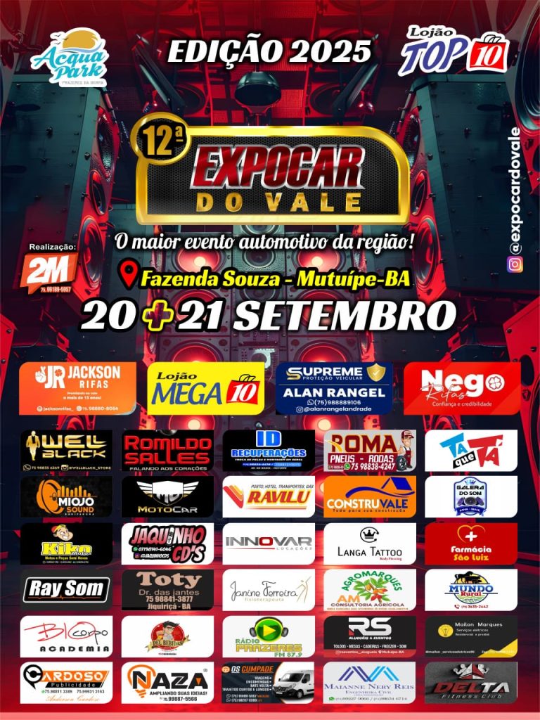 Foto: Divulgação Nos dias 20 e 21 de setembro, Mutuípe será palco de um dos maiores encontros de som automotivos da região: a 12ª edição do Expocar do Vale. O evento, que já é tradição entre os apaixonados por veículos, será realizado na Fazenda Souza e promete reunir expositores, colecionadores e admiradores do mundo automobilístico. … continue