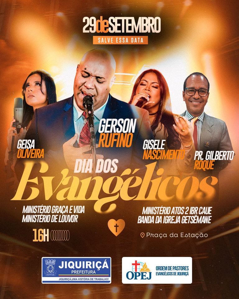 Foto: Divulgação A cidade de Jiquiriçá se prepara para viver dias de muita fé, louvor e comunhão durante a Semana Evangélica, que acontece de 22 a 29 de setembro. A programação contará com cultos, ações sociais e a grande celebração do Dia dos Evangélicos, consolidando um momento de unidade entre as igrejas locais e a … continue