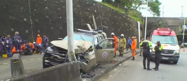 Foto: TV Bahia Três policiais militares ficaram feridos depois que a viatura que eles estavam bateu em um poste no final da manhã desta quinta-feira (4), na Avenida Gal Costa, um das principais de Salvador. O acidente aconteceu próximo da Estação Pituaçu. Segundo informações da Polícia Militar, duas das vítimas foram atendidas em estado grave … continue