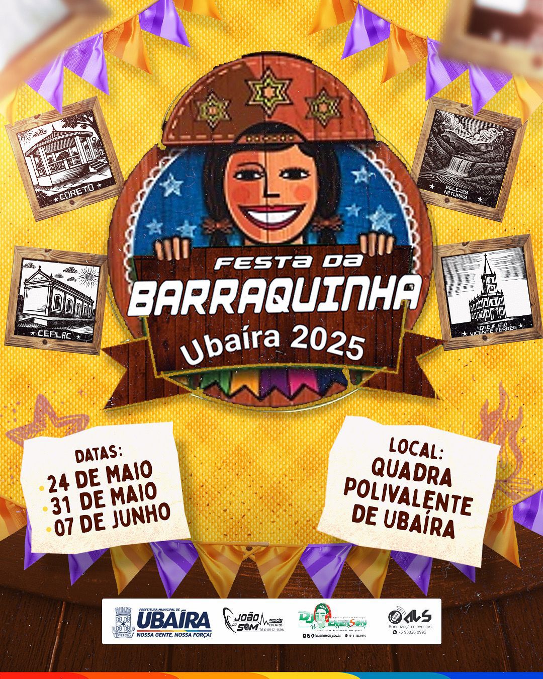 Nos dias 24 e 31 de maio e 7 de junho, Ubaíra será palco da Festa da Barraquinha 2025, uma celebração tradicional que movimenta a cidade com música, cultura e espírito comunitário. Abrindo oficialmente os festejos juninos no município, o evento marca o início de um período de grande importância para a identidade cultural local.