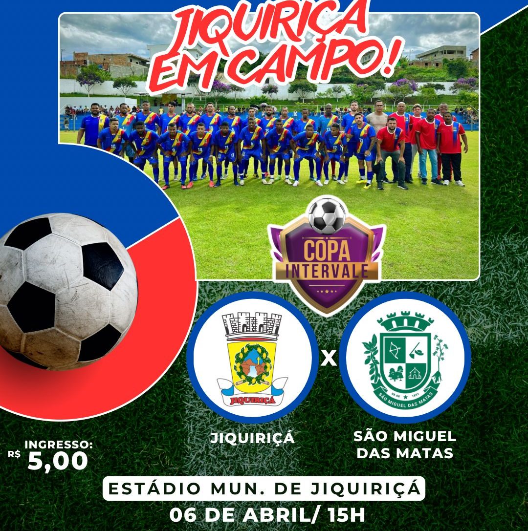 No próximo domingo, dia 06 de abril, às 15h, o Estádio Municipal Pedro de Almeida Maia Filho será palco de mais um emocionante confronto da Copa Intervale. A Seleção de Jiquiriçá enfrentará a forte equipe de São Miguel das Matas, em um duelo decisivo rumo à classificação.