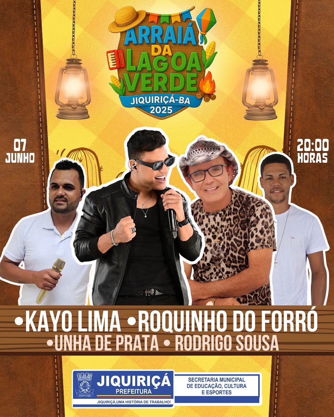 A cidade de Jiquiriçá já está em clima de festa! Está tudo pronto para a chegada do tradicional Arraiá da Lagoa Verde, que promete animar a noite do próximo dia 7 de junho, a partir das 20h, com muita música, dança e cultura nordestina.