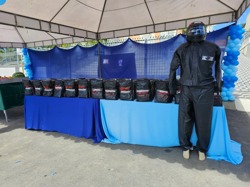Durante a cerimônia, os mototaxistas receberam novo fardamento, além de um kit contendo roupa para o tempo chuvoso e capacete, reforçando a segurança e a padronização da categoria.