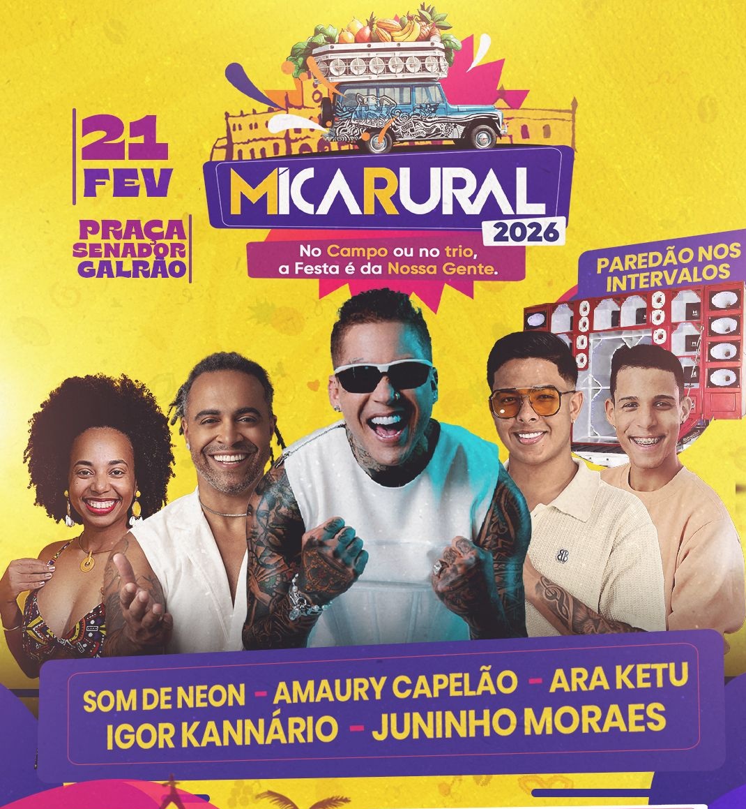 A Prefeitura de Ubaíra anunciou oficialmente a programação do MicaRural 2026, que promete movimentar a cidade neste sábado com uma grade de atrações que mistura tradição, arrastão e grandes shows no trio elétrico.