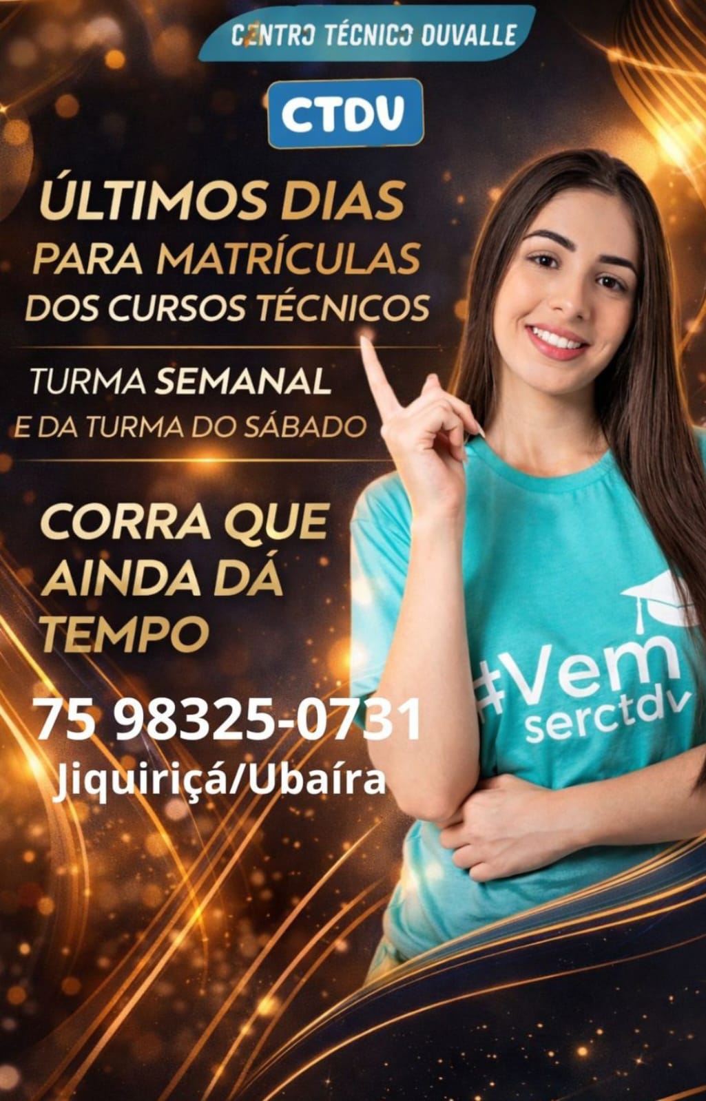 Com atuação em Jiquiriçá e Ubaíra, o CTDV tem se destacado na formação de profissionais capacitados para o mercado de trabalho, oferecendo ensino técnico de qualidade e foco na empregabilidade. A proposta é atender tanto quem busca o primeiro diploma profissional quanto quem deseja se qualificar e ampliar as oportunidades de renda.