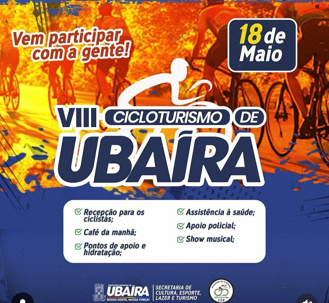 Preparem-se para pedalar e se divertir! No dia 18 de maio, a cidade de Ubaíra receberá o VIII Cicloturismo, um evento imperdível que promete atrair ciclistas e amantes da natureza de todas as idades. Organizado pelo Grupo UEB em parceria com a Prefeitura Municipal de Ubaíra, o evento contará com uma programação diversificada para garantir a melhor experiência aos participantes.